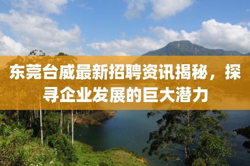 東莞臺威最新招聘資訊揭秘,探尋企業(yè)發(fā)展的巨大潛力